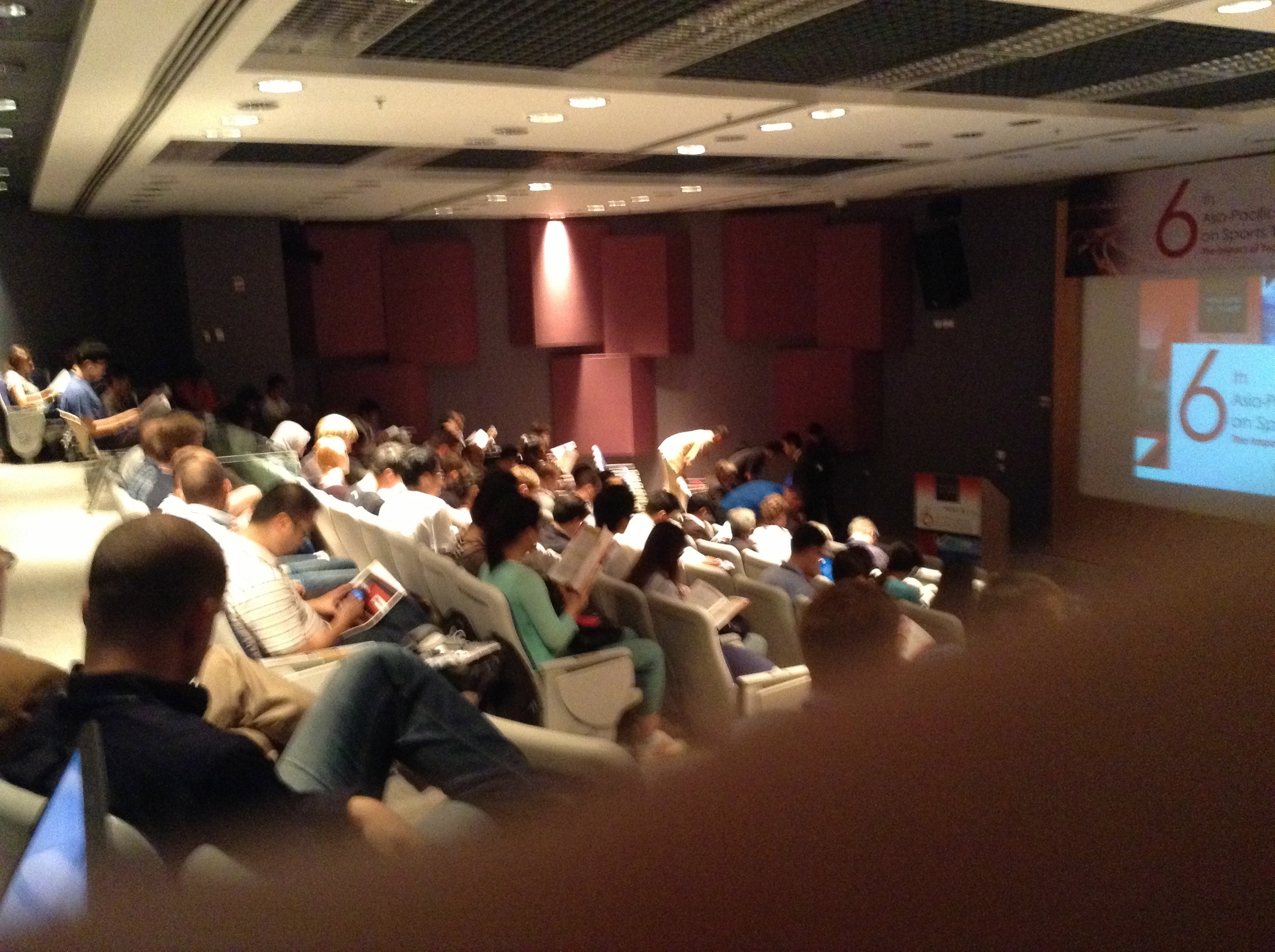 Quite the conference today at APCST2013 in Hong Kong (well done RMIT), half of the ISEA executive committee and general membership seemed to be there and ASTN’s founder James D. there as well – so nice to see everyone again! The plenaries kicked off with Mehta’s tour de force of ball aerodynamics followup by a terrific talk on walking, running and prosthesis with a nice discussion of advantages of rebound and power between able bodies and technologically enhanced and some thought on where its all headed. Following that a nice overview of sensor technologies and our friends the inertial sensors (thanks for the plug for our work too). A guest session by our conference hosts from a medical perspective had us reevaluating our own approaches to work too. After the general sessions, we were treated to a insiders tour of Honk Kong’ s elite sports facility, almost every court, room, the lab was full of coaches, scientist and athletes..wow!!