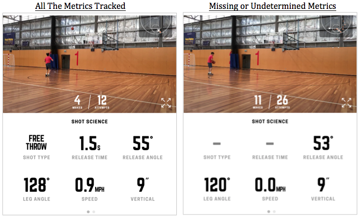 Ideally, I would like to have all the above statistics for every single shot I attempted. But in reality, the app is unable to determine certain metrics sometimes and often what I see is undetermined Shot Type, unknown Release Time and undetermined Speed (or 0.0 mph).