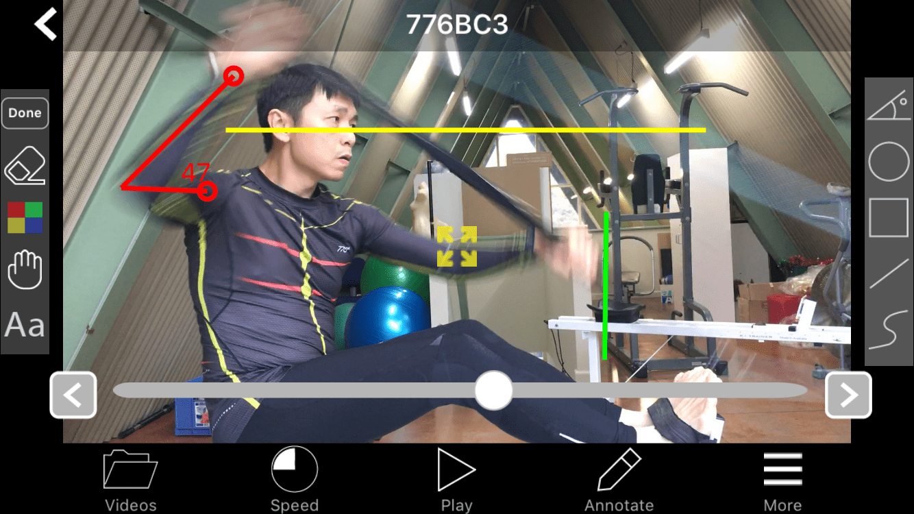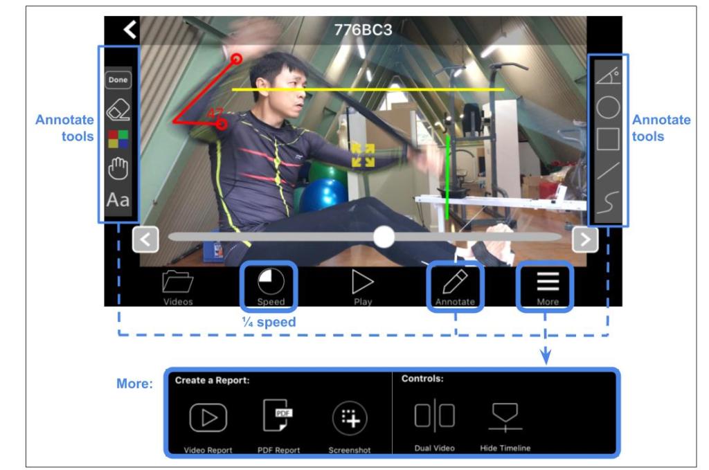 776BC also developed an iOS App called the Motion Companion. In it contains a video analysis suite where a coach/athlete can load up videos of an athlete wearing the Motion garment and analyse movements, mark up the video, measure angles, and create reports.