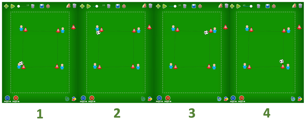 The user has over 20 items of equipment to choose from. This includes popup goals, hurdles, cones, balls and player icons. To make the placement of equipment look more symmetrical there is a shape creator where users can select triangle, squares and hexagons guidelines. Unfortunately, shapes can’t be made smaller or larger with one movement rather it needs to be done to corner by corner. Due to this generally resulting in a shape with uneven sides it somewhat defeats the purpose of the shape creator. Despite this limitation we still resorted to use the feature for placing equipment when setting up a drill. Due to the wide range of equipment avavilable at no moment did we feel that we couldn’t design any of the drills we intended to create, whether it be a passing drill, defensive drill or shooting drill.