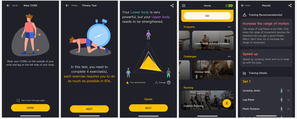 Using the same Core, RaceFit also came up with a scaled down consumer version that comprises of two Cores on velcro bands. Paired with their smart phone app, users can track a variety of HIIT (High Intensity Interval Training) workouts on the app using one Core strapped on the wrist and another strapped on the ankle. The RaceFit Core Fitness app is like a virtual workout partner with built-in smarts to identify the users’ strength and weaknesses (through a fitness test), help them set goals, recommend workouts and keeps track of their progress together with subsequent training recommendations. Besides HIIT workouts, users who run can also track their outdoor running activities using the two Cores strapped on both ankles. The Cores provides additional data to your runs such as step angles and impact forces.