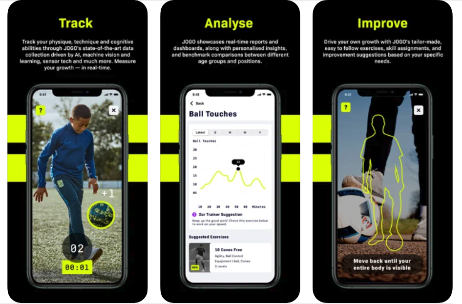 Jogo developed a football training app that allows a youth player to practice football drills, keep track of their progress and even compete with friends. All they need is a mobile device. Some of the practice exercises include ball control, dribbling, juggling, shooting, wall work and strength and conditioning exercises. The app utilises the smartphone camera and computer vision to track those football drills and the player gets a performance rating for each skill and the smarts in the app provides tips for improvements. It reminds me of what Home Court is trying to do for youth basketball players.