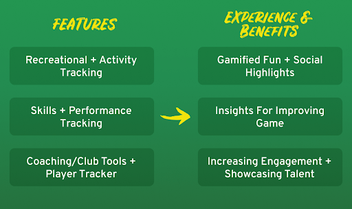- A dashboard/app for coaches to manage teams and having coaching specific tools (e.g. voice over & annotations); and the ability to integrate with different coaching tools (e.g. coaches eye)